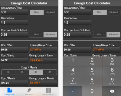 This handy watt-and-cost calculator runs across all OS platforms for smartphones and can actually calculate costs of energy consumption in kilowatt hours, as well as carbon emissions. It can give you estimated electricity usage costs per day, week or month for electric equipment and appliances, so you can compare and cut down your utility bills.